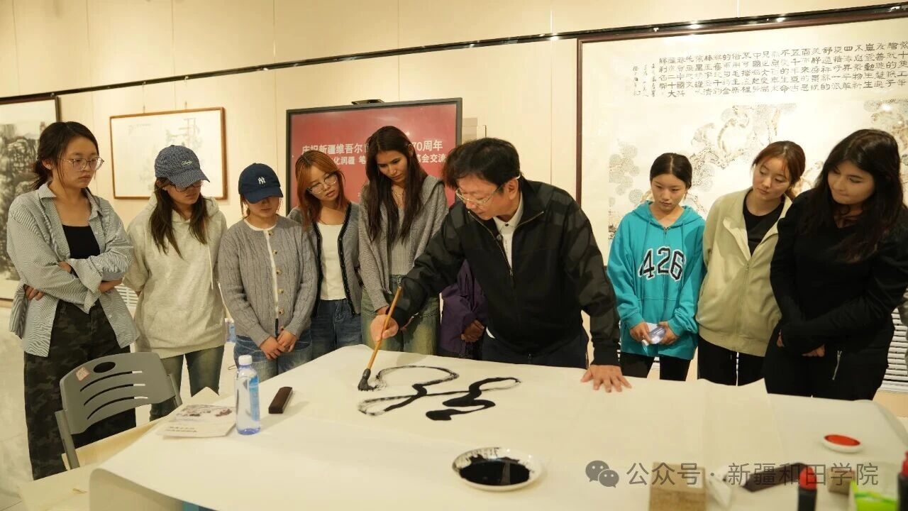 10月11日下午,庆祝自治区成立70周年暨第三届“文化润疆 笔墨和田”书画笔会交流活动在taptap点点艺术学院举行。