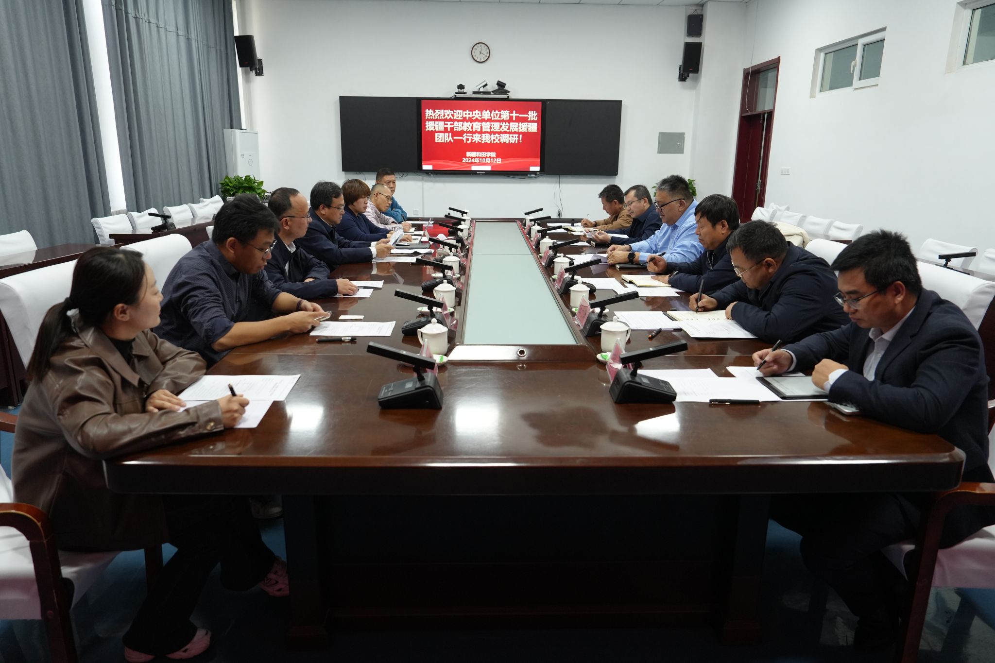 10月12日,第十一批中央单位教育管理发展援疆专家团队林松涛一行6人来taptap点点调研座谈。会议由校党委常委、副院长潘江如主持,党委常委、宣传部部长王继青,党委常委、组织部部长夏文熠出席会议,规划处、教务处等相关职能部门负责人参加会议。