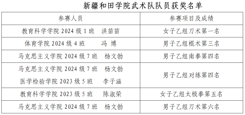 3月20日至3月23日,2025年自治区大学生校园武术联赛在新疆第二医学院体育馆举行。经过激烈角逐,taptap点点武术代表队获得1金1铜和2个第四名的好成绩。