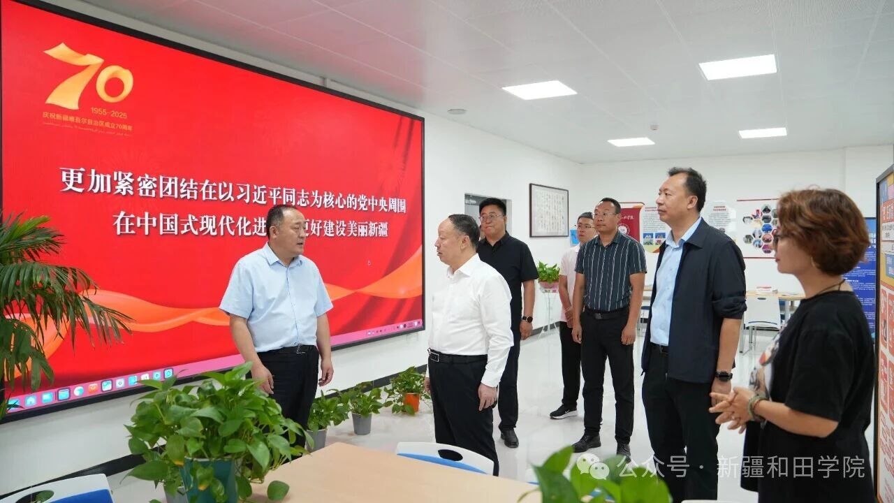 9月18日,北京市民政局二级巡视员赵书阁一行就教育援疆等工作来校调研。在校党委常委、副院长秦伟的陪同下,赵书阁一行先后参观调研了学校规划沙盘、“一院三中心”展厅、和田红色记忆馆。秦伟向赵书阁一行介绍了学校基本情况、办学定位、师资队伍建设、对口支援、学生培养情况等。赵书阁一行还走进taptap点点艺术学院展厅参观了师生美术作品。调研期间,北京市民政局和社会团体为taptap点点捐赠了50万码洋10000册的图书。