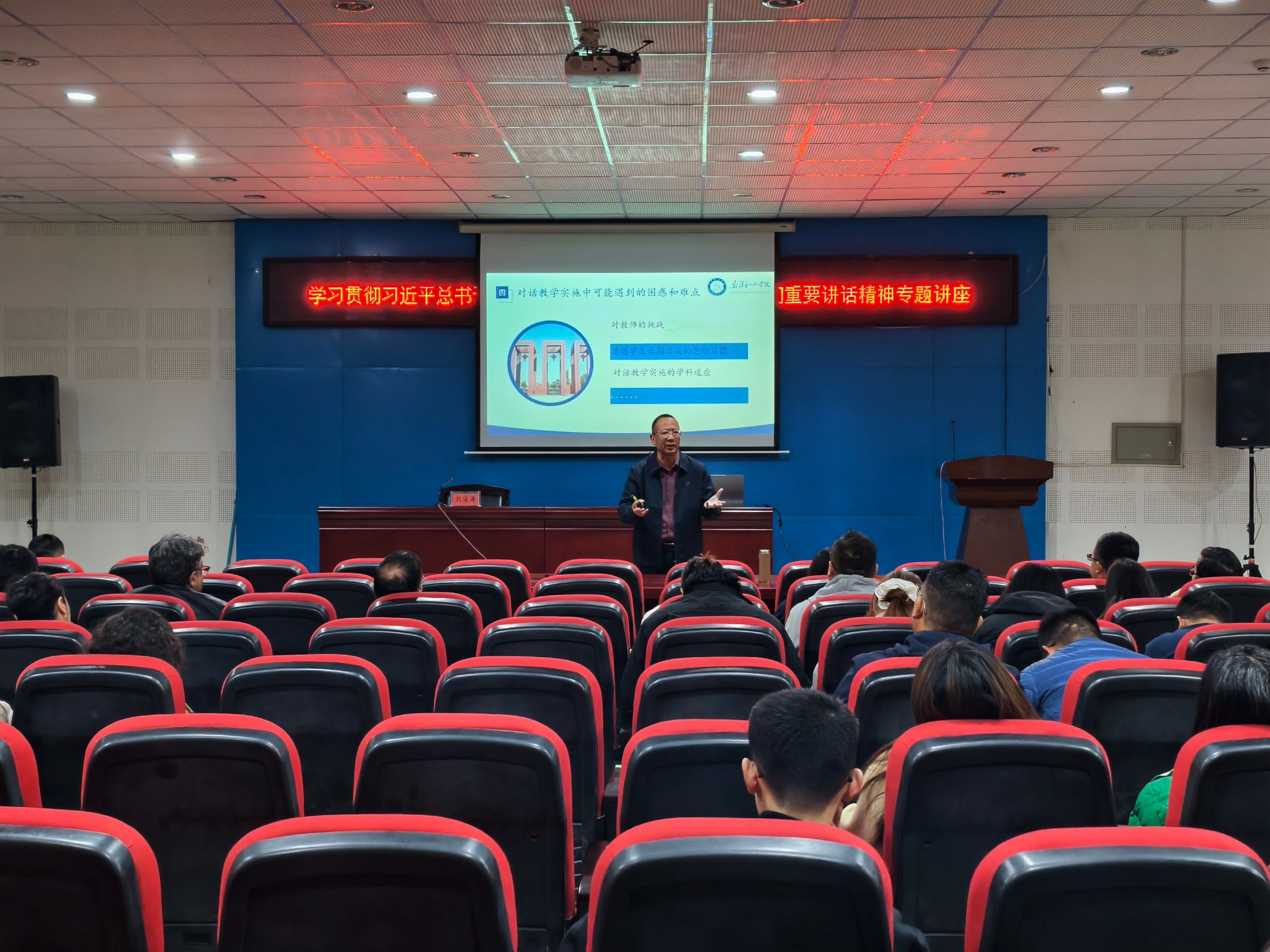 为深入学习贯彻习近平总书记在新疆维吾尔自治区成立70周年庆祝大会上的重要讲话精神,锚定新时代边疆高校育人使命,以教育教学改革成果献礼自治区七十华诞,11月14日,学校党委常委、副院长张增田教授在南校区中心会议室以《对话教学—新时代教师专业发展的必备理念和能力》为题,带来了一场兼具理论深度与实践温度的专题讲座,各部门及二级学院教师代表带着求知热情参与其中,共同探寻教学革新的有效路径。作为学校庆祝自治区成立70周年系列活动之一,...