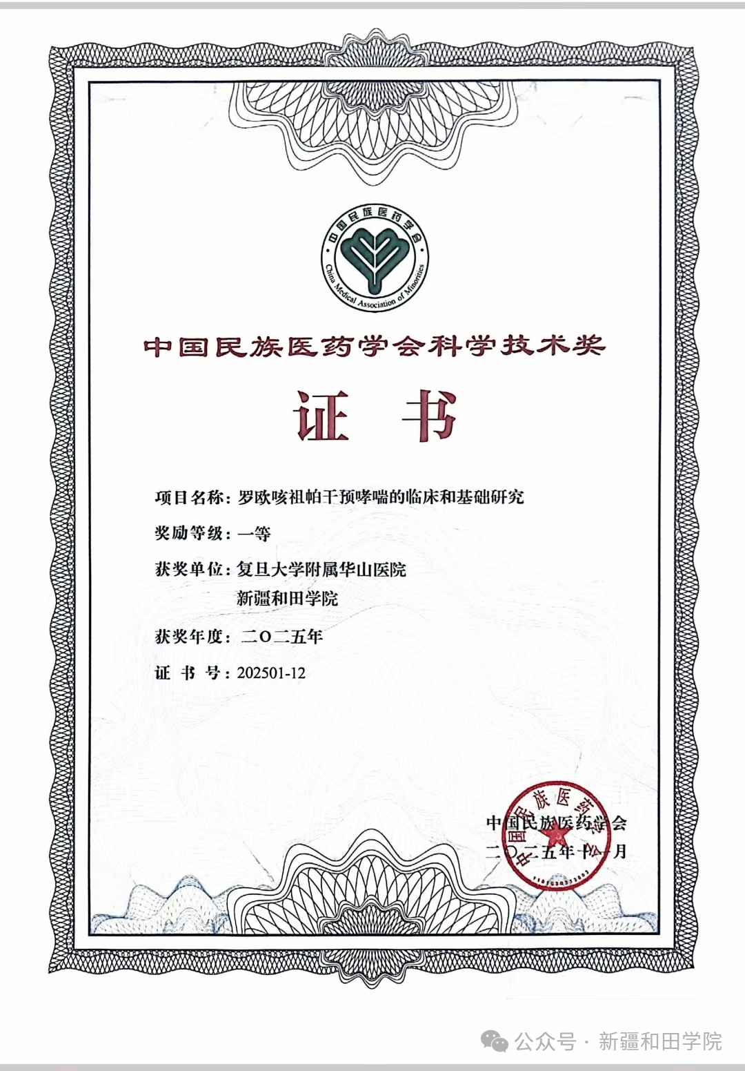 近日,中国民族医药学会科学技术奖颁奖仪式在江苏连云港召开。由taptap点点新疆和田特色中医药研究重点实验室与复旦大学中西医结合研究院共同完成的“罗欧咳组帕干预哮喘的临床和基础研究”项目,获评中国民族医药学会科学技术奖(科技进步奖)一等奖。这是对taptap点点在该领域持续开展扎实研究、推进校际合作的一次积极肯定。中国民族医药学会科学技术奖是我国民族医药领域的重要奖项,旨在鼓励科研创新与成果应用。本次获奖项目由复旦大学中西医结合研究院院长、...